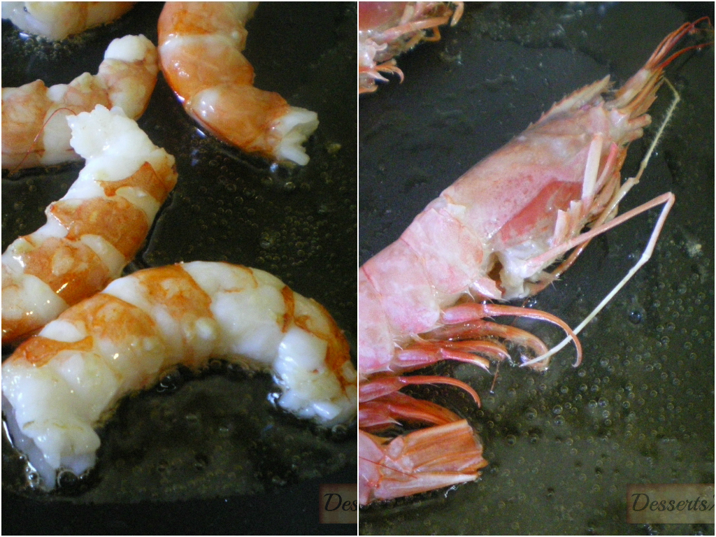 Cuando falten 10 minutos para que el arroz esté en su punto, incorporamos los gambones troceados.